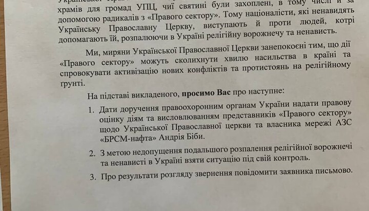 In the text of the appeal to Vladimir Zelensky, they indicated specific facts related to the actions and statements of radicals against the UOC, and called for the necessary measures to be taken to prevent further incitement of religious enmity and hatred.