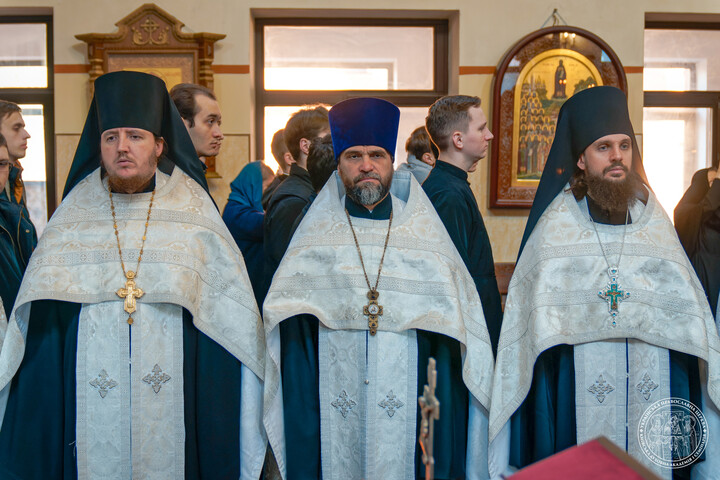 The prayer service was also attended by Metropolitan Augustine of Bila Tserkva and Bohuslav, Chairman of the Synodal Department for Cooperation with the Armed Forces and Other Military Formations of Ukraine; Archbishop Iona of Obukhiv, Chairman of the Synodal Youth Affairs Department; Archbishop Ambrosiy of Zghurivka, Vice-Rector for Educational Work; Abbess Serafima (Shevchyk), Head of the Synodal Department "Church and Culture" and Abbess of the Holy Archangel Michael Monastery in Odesa; as well as professors, students, and seminarians of the Kyiv Theological Academy and Seminary.