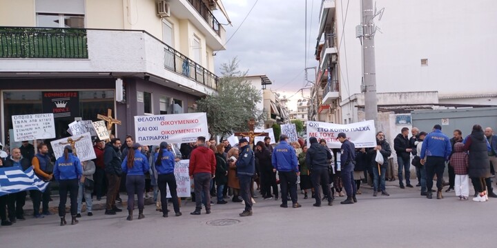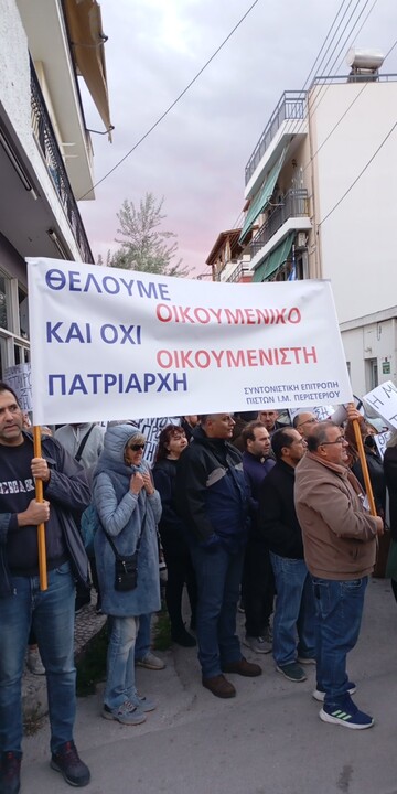 The protest, organized by the Coordinating Committee of Believers of the Holy Metropolis of Peristeri, began at 4:00 PM in front of the building of the Peristeri Metropolis of the Greek Orthodox Church, where the head of the Phanar had arrived on a visit.