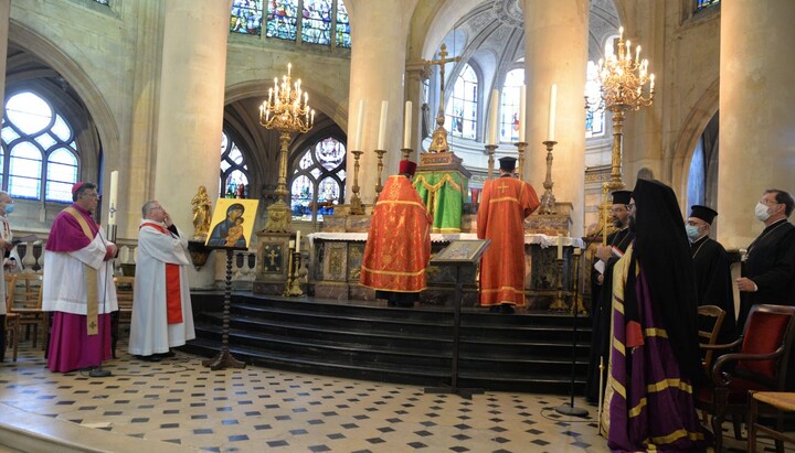 On October 10, 2021, At the Saint-Etienne-du-Mont Cathedral on the Montagne Sainte-Geneviève in Paris, an Orthodox Vespers was officiated on Sunday by Metropolitan Dimitrios of France. The Roman Catholic Archbishop of Paris, Michel Aupetit, orthodox clergy, and many faithful attended the service, reports the Orthodox Times.