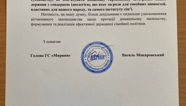 Earlier, the Public Union “Miriane” stated that the Istanbul Convention contradicts the Christian worldview, destroys traditional family values and violates Article 15 of the Constitution of Ukraine.