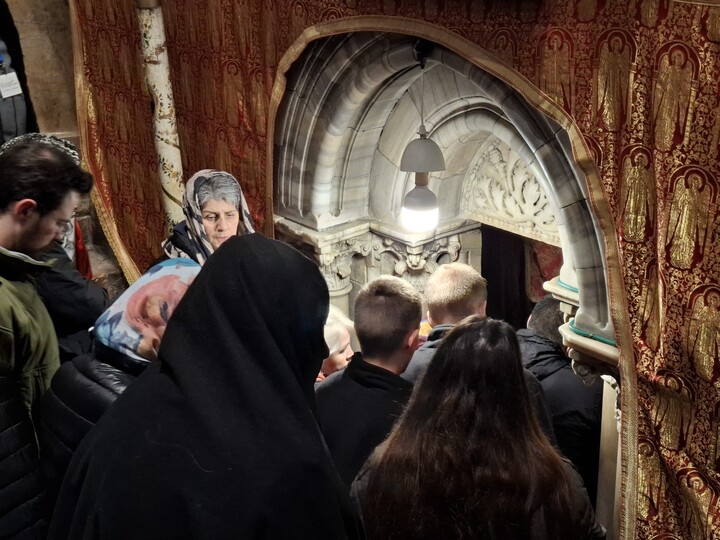 The procession reached the humble gate of the magnificent Basilica, and here, the entrance was made, where the General Consul of Greece in Jerusalem, Mr Dimitrios Angelosopoulos, awaited His Beatitude, following the protocol. The Patriarchal procession proceeded through the Basilica, a privilege reserved solely for the Orthodox, until the area in front of the iconostasis (Katholikon).