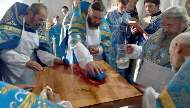 Metropolitan Vladimir consecrating the throne of a new church of the UOC in Myzovo. Photo: news.church.ua Metropolitan Vladimir consecrating the throne of a new church of the UOC in Myzovo. Photo: news.church.ua