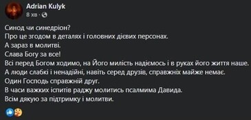 “Hierarch” of the OCU Ruslan (Adrian) Kulik, on his Facebook page, commented on the decision of the “Holy Synod” of the OCU, which to send him to retirement for a period of 1 year with a ban on ministry for beating a woman. Later, Kulik deleted the post.