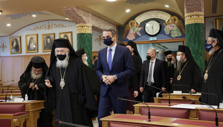 Greek Prime Minister Kyriakos Mitsotakis arrived at the Synodal Palace accompanied by Minister of Education and Religions Mr Nika Kerameos and the Deputy Minister under the Prime Minister and Government Spokesman Mr Ioannis Oikonomou to take part in an extraordinary meeting of the Permanent Holy Synod of the Greek Orthodox Church, reports Romfea.