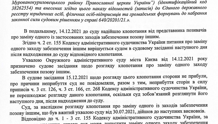 On December 15, the Kyiv Court officially prohibited the Vinnytsia RSA officials from illegally re-registering the communities of the UOC in the OCU.