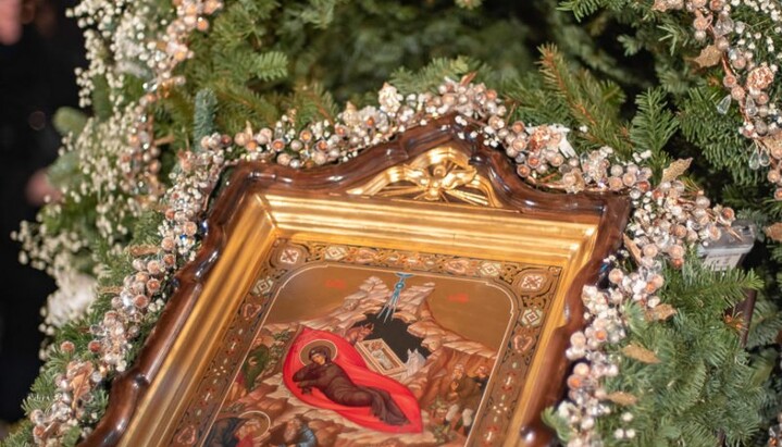 At the end of the Liturgy, the clergy performed the rite of glorification in front of the icon of the feast of the Nativity of Christ.
