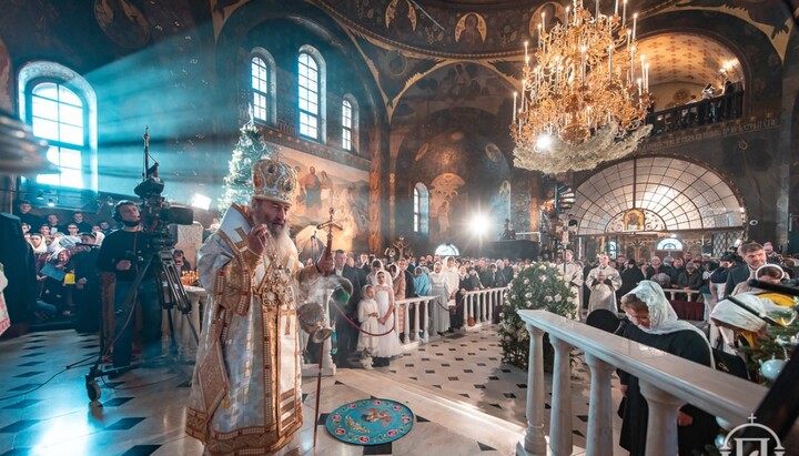 On January 7, 2022, the Feast of Nativity of Christ, His Beatitude Metropolitan Onuphry celebrated the Divine Liturgy in the Church of Saints Antony and Theodosius at the Kyiv-Pechersk Lavra, reports news.church.ua.