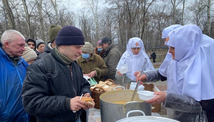 With the blessing of Metropolitan Theodosius of Cherkasy and Kaniv, the sisters of mercy of the Martha and Mary Convent of Cherkasy organized the preparation of dinners on the territory of the Archangel Michael Cathedral and feed everyone for free, reports the Information and News Department of the Cherkasy Eparchy.