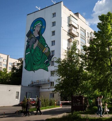 The mural "Saint Javelina" was painted on the facade of a house in Solomenskyi district of the capital.