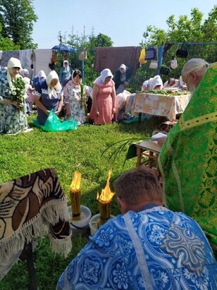 On June 12, 2022, on the feast of the Holy Trinity, the clergy and parishioners of the Holy Assumption Church in the Ruzhychna micro-district of Khmelnytskyi performed the Divine Liturgy and Vespers with kneeling prayers in the open air, reports human rights activist Victoria Kokhanovska on her Facebook page.