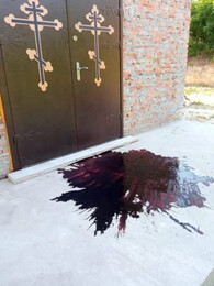 In Kordyshev vandals spill pig's blood in front of UOC church door