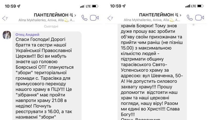 Father Vladimir, the rector of the Dormition church, asked the faithful via Facebook to come to the prayer service, which would take place during the illegal assembly. He reported that the head of the Boyarka UTC promised to liquidate all UOC communities on the territory of the Boyarka district by the end of 2022.