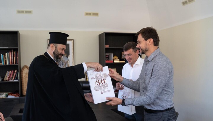 On August 26, 2022, Bishop Mikhail of Comana received Igor Sapozhko, the mayor of Brovary, and Oleksiy Doroshenko, a member of the executive committee of the Brovary City Council, at the Phanar's Stauropegion in Ukraine, the "Stauropegion of the Ecumenical Patriarchate in Ukraine" Mission reports on its Facebook page.