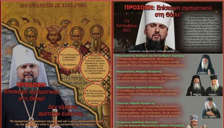 The believers of the Church of Greece are distributing leaflets with a warning that Epifaniy, who is going to come to the island of Thassos, is a layman.