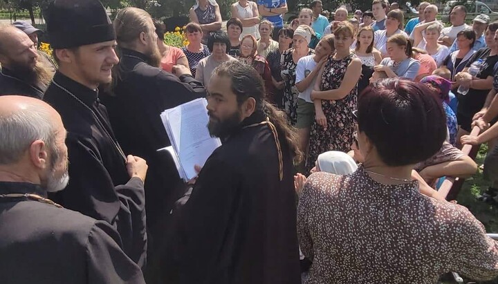 The villagers were notified in advance about the meeting on Facebook. “We invite all patriots of Ukraine to the meeting, which will be held on August 26 (Friday) near the church at 12 noon. It's time to put an end to the Moscow Patriarchate," the announcement said.