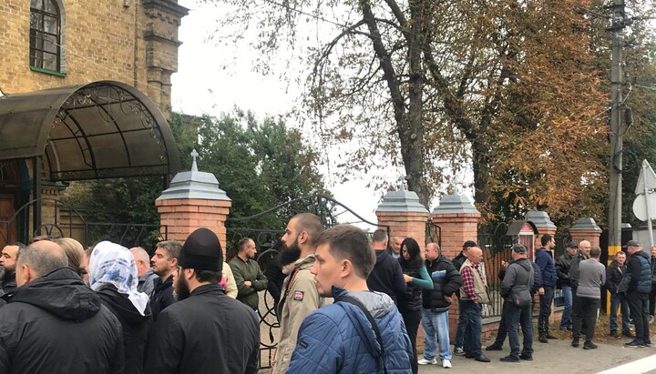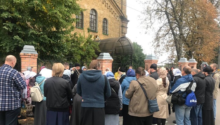 OCU activists and representatives of the local authorities lined up at the gate and did not allow the believers to enter the church grounds.