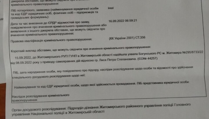 On September 22, 2022, OCU supporters, along with their "clergy", seized the St. Nicholas Church in Popelnia of the Zhytomyr Eparchy.