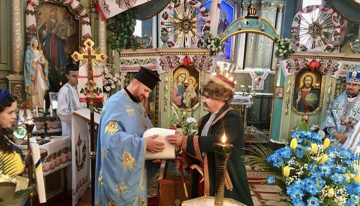 Pysyk was concelebrated by the rector of the Catholic St. Sophia Church in Podvolochysk Petr Savchak. Together with the local OCU “clergymen”, he prayed during the "liturgy" at the altar and laid his hands upon the holy gifts.