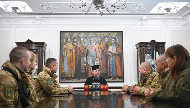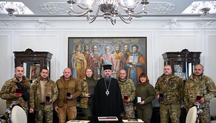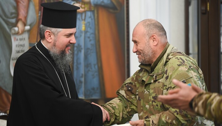 The head of the OCU, Epifaniy Dumenko, presented a church order to the head of the Ukrainian Volunteer Army, Dmitry Yarosh, reports the OCU website.