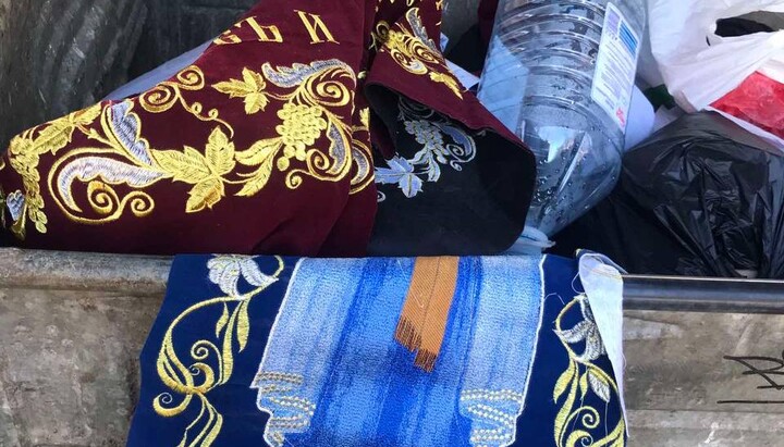 On November 9, 2022, Alla Ruzaeva, a resident of Rivne, was walking along Kotliarevskogo Street and noticed a cloth with the face of the Mother of God embroidered in the trash. All in all, the passer-by found 10 shrouds of the Mother of God, Jesus Christ, and quite a few other church utensils in the container, reports the Rivne Eparchy of the Ukrainian Orthodox Church.